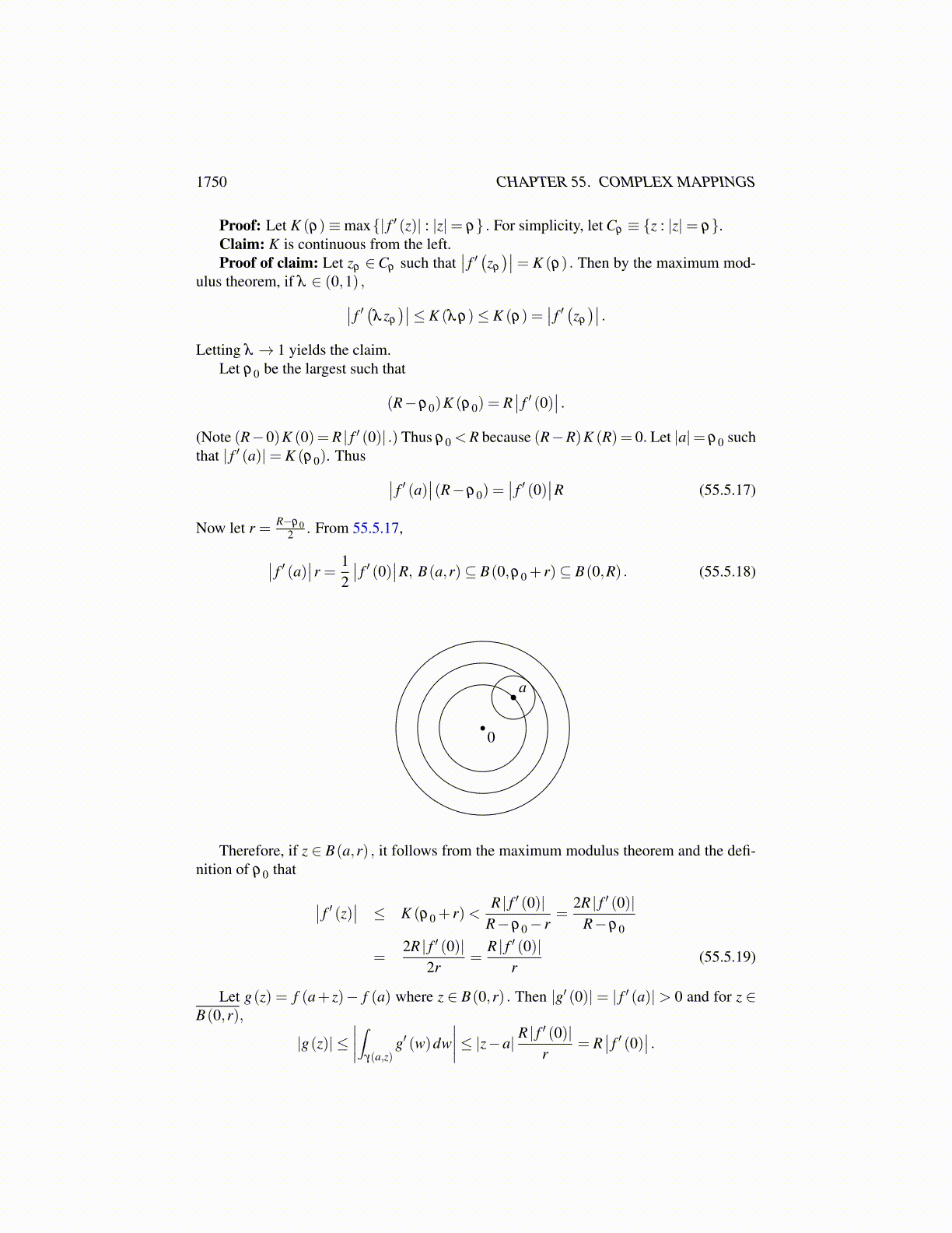 Lemma 55.5.1 Let f be analytic on a region containing B(0,r) and suppose∣∣ f ′ (0)∣∣= b > 0, f (0) = 0,