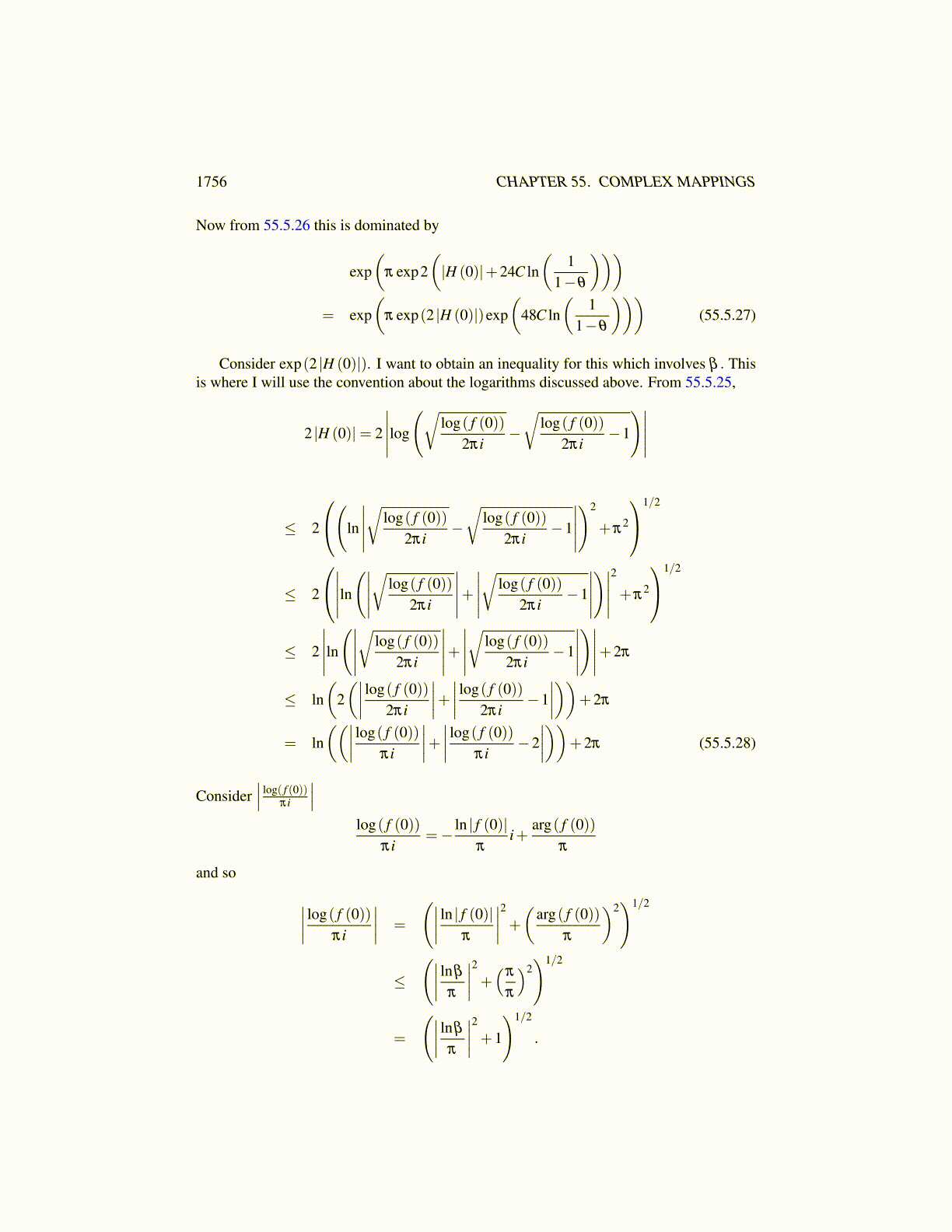 log( f (0)) = ln | f (0)|+ iarg( f (0)) , arg( f (0)) ∈ (−π,π]. (55.5.24)