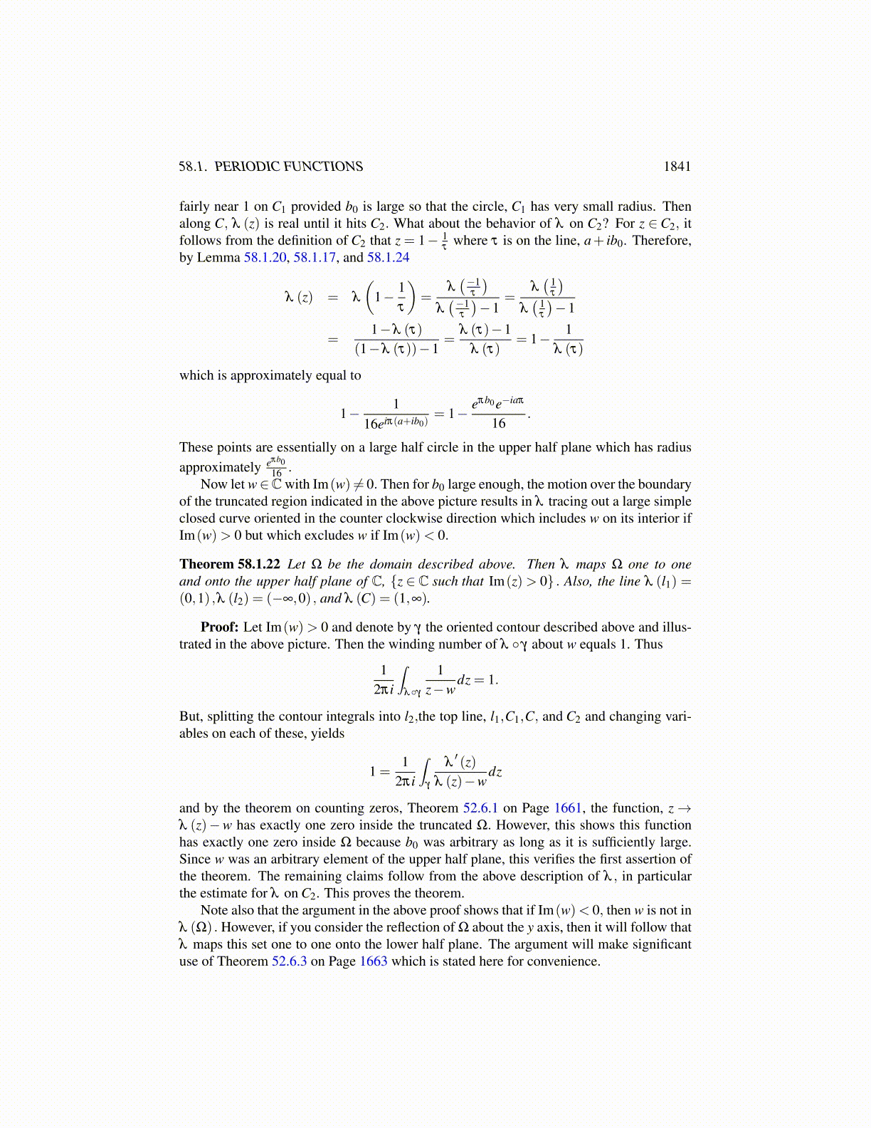 Corollary 58.1.21 limb→∞ λ (a+ ib) = 0 uniformly in a ∈ R. Also λ (ib) for b > 0 is realand is between 0 and 1, λ is real on the line, l2 and on the curve, C and limb→0+ λ (1+ ib)=−∞.