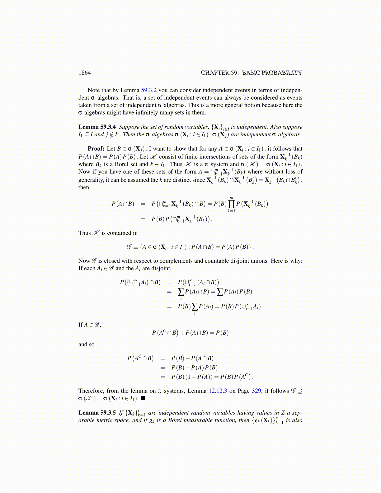 where Ft = Mt if t /∈ J. Let K denote sets, F of the sort in 59.2.8. It is clearly a π system.Now let G denote those sets F in B (∏t∈J Mt) such that 59.2.9 holds. Thus G ⊇K . It isclear that G is closed with respect to countable disjoint unions and complements. HenceG ⊇ σ (K ) but σ (K ) = B (∏t∈J Mt) because every open set in ∏t∈J Mt is the countableunion of rectangles like 59.2.8 in which each Fti is open. Therefore, 59.2.9 holds for everyF ∈B (∏t∈J Mt) .