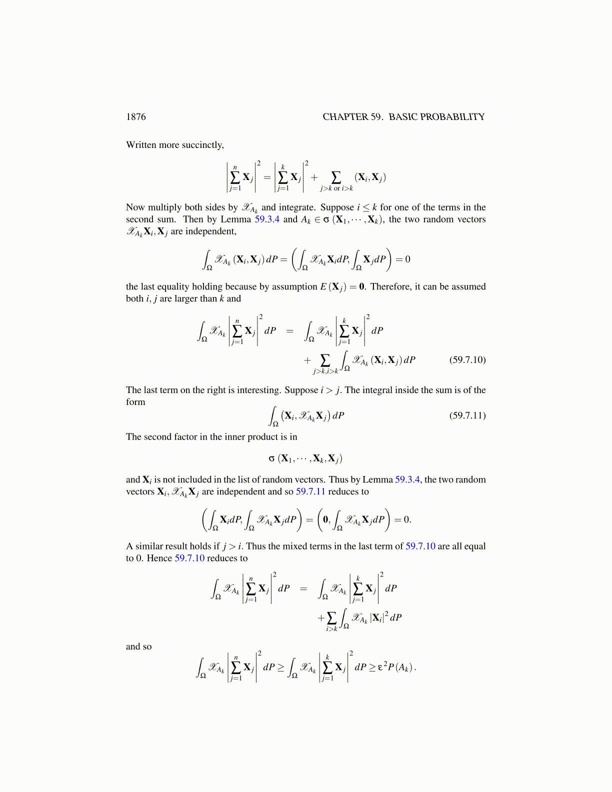 59.7 Kolmogorov’s InequalityKolmogorov’s inequality is a very interesting inequality which depends on independenceof a set of random vectors. The random vectors have values in Rn or more generally somereal separable Hilbert space.