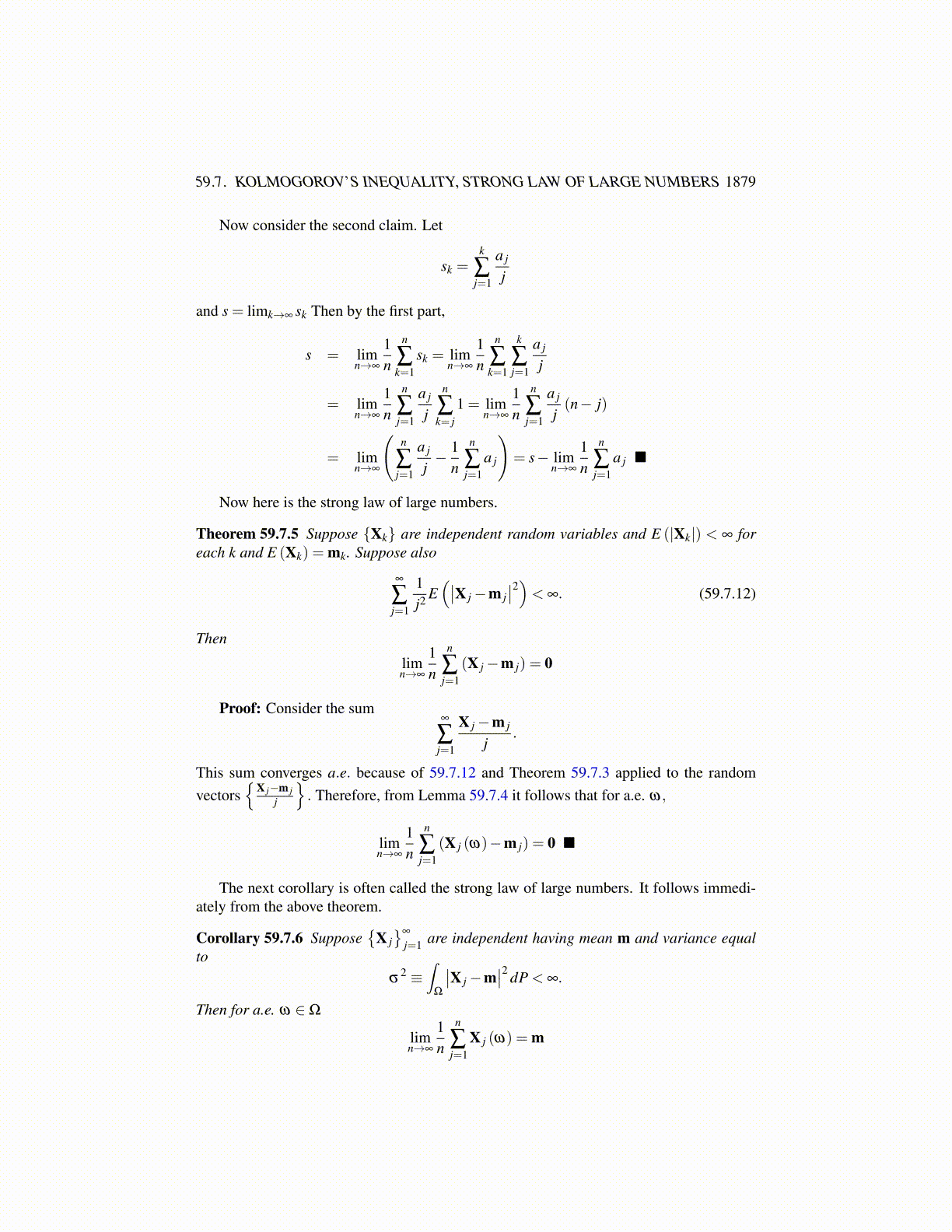 59.7. KOLMOGOROV’S INEQUALITY 1879