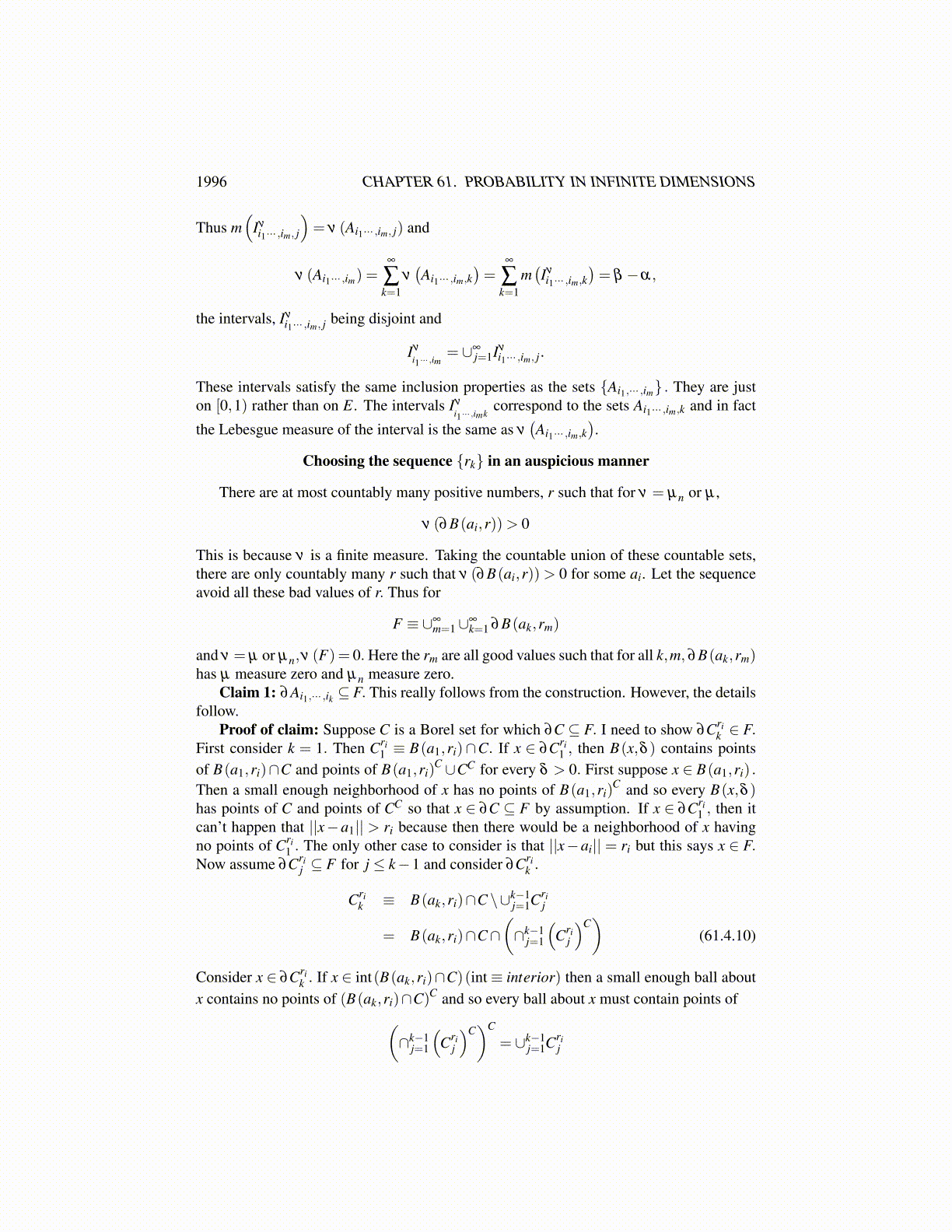 1996 CHAPTER 61. PROBABILITY IN INFINITE DIMENSIONS