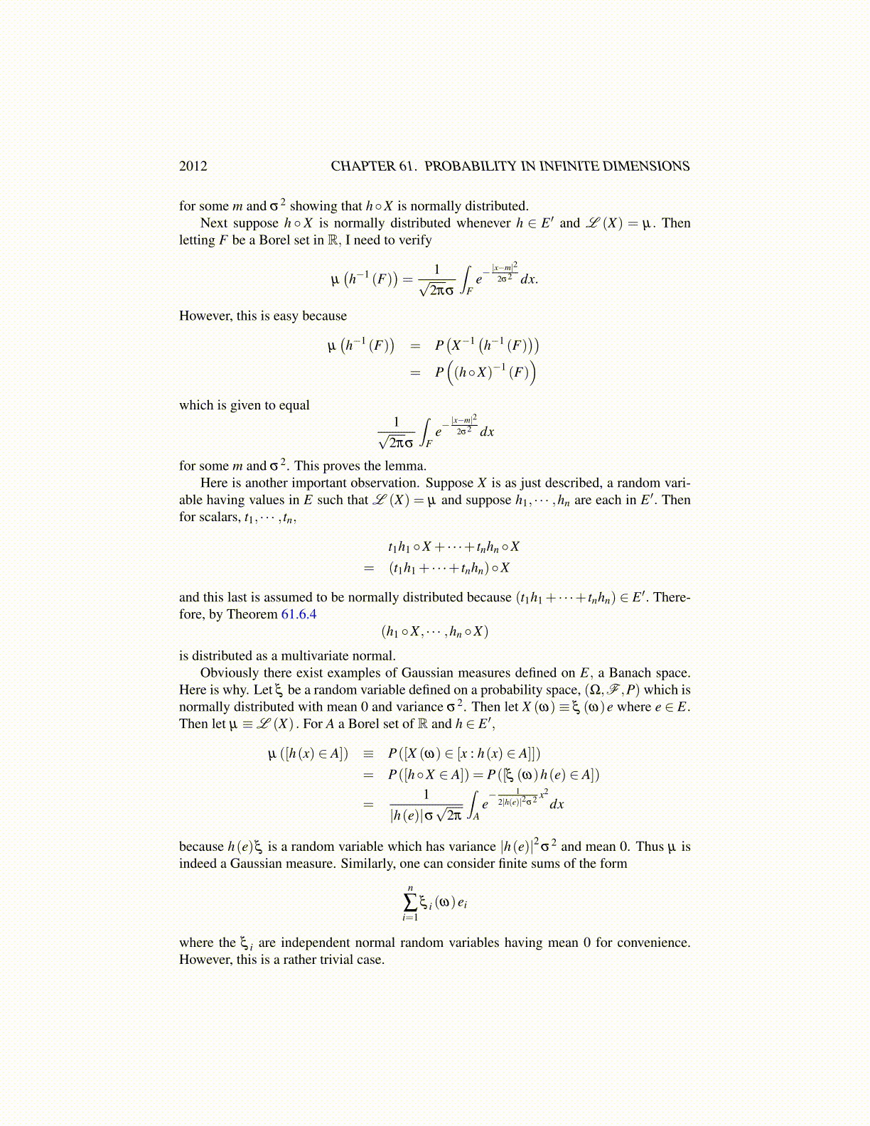 2012 CHAPTER 61. PROBABILITY IN INFINITE DIMENSIONS