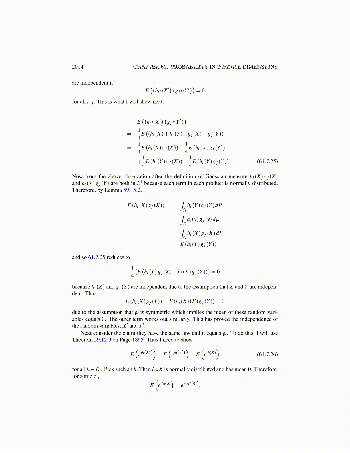 2014 CHAPTER 61. PROBABILITY IN INFINITE DIMENSIONS