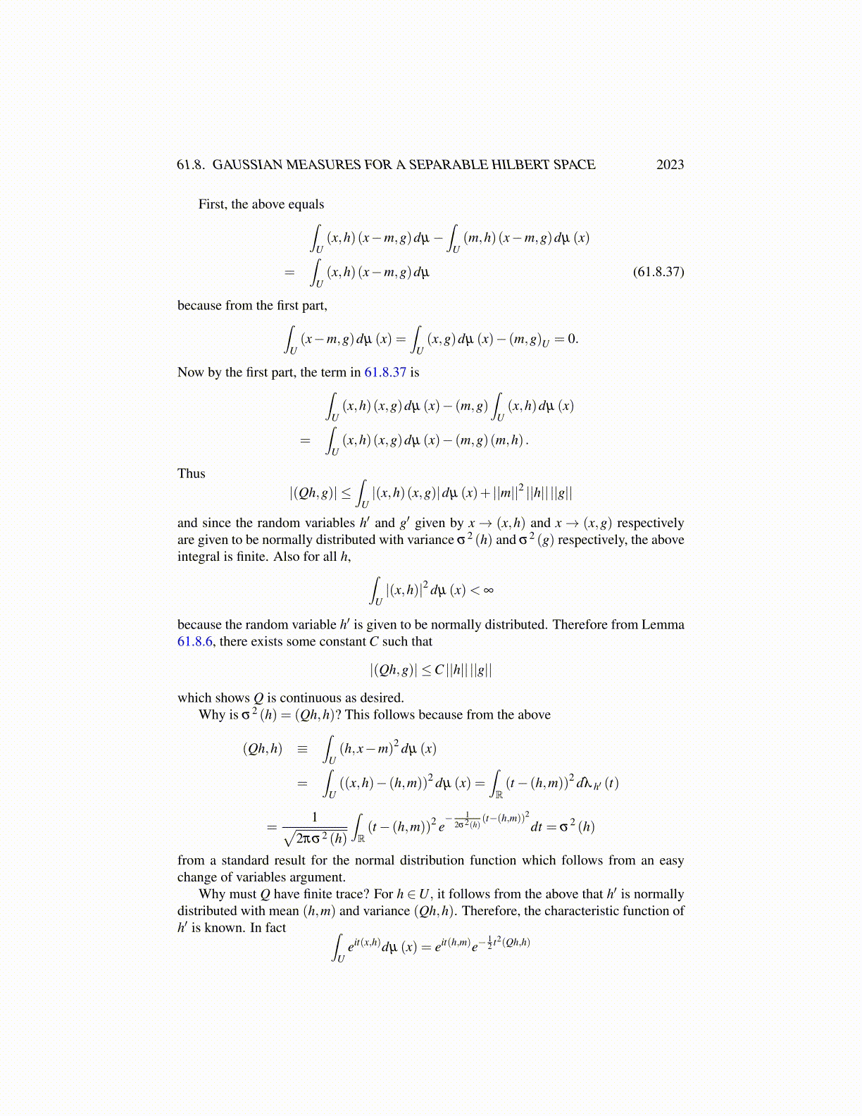 61.8. GAUSSIAN MEASURES FOR A SEPARABLE HILBERT SPACE 2023