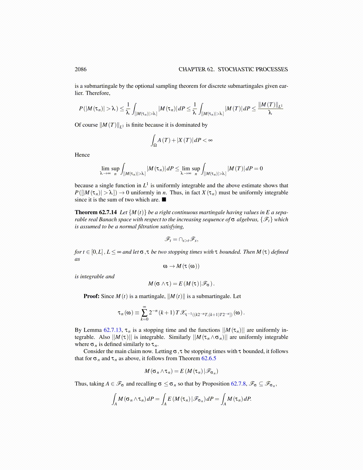 Now from Lemma 60.4.3 or Theorem 62.6.7, X (0) ,X (τn) ,X (T ) is a submartingale.Then ∫