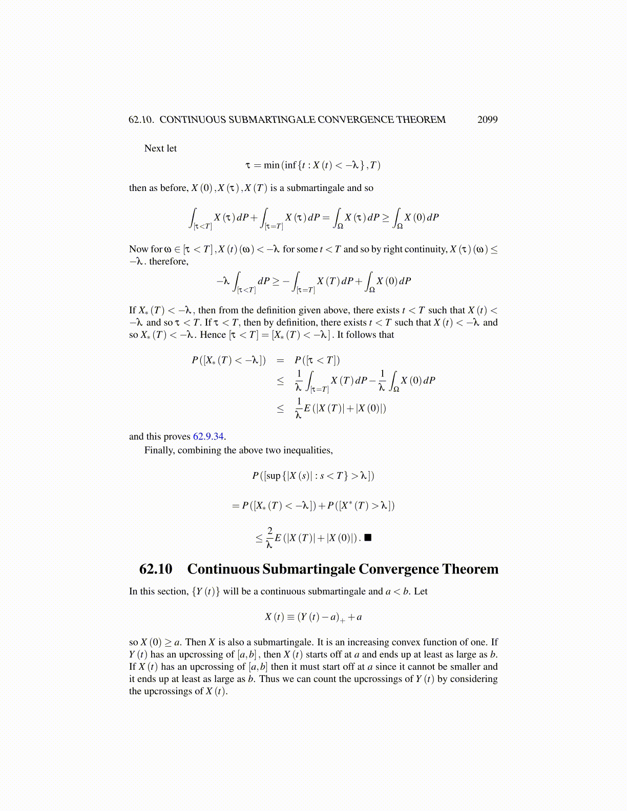 Let Xτn be as just defined. Thus it is a bounded submartingale. To save on notation, theX in the following argument is really Xτn . This is done so that all the integrals are finite. Ifp > 1, then from the first part using the case of p = 1,