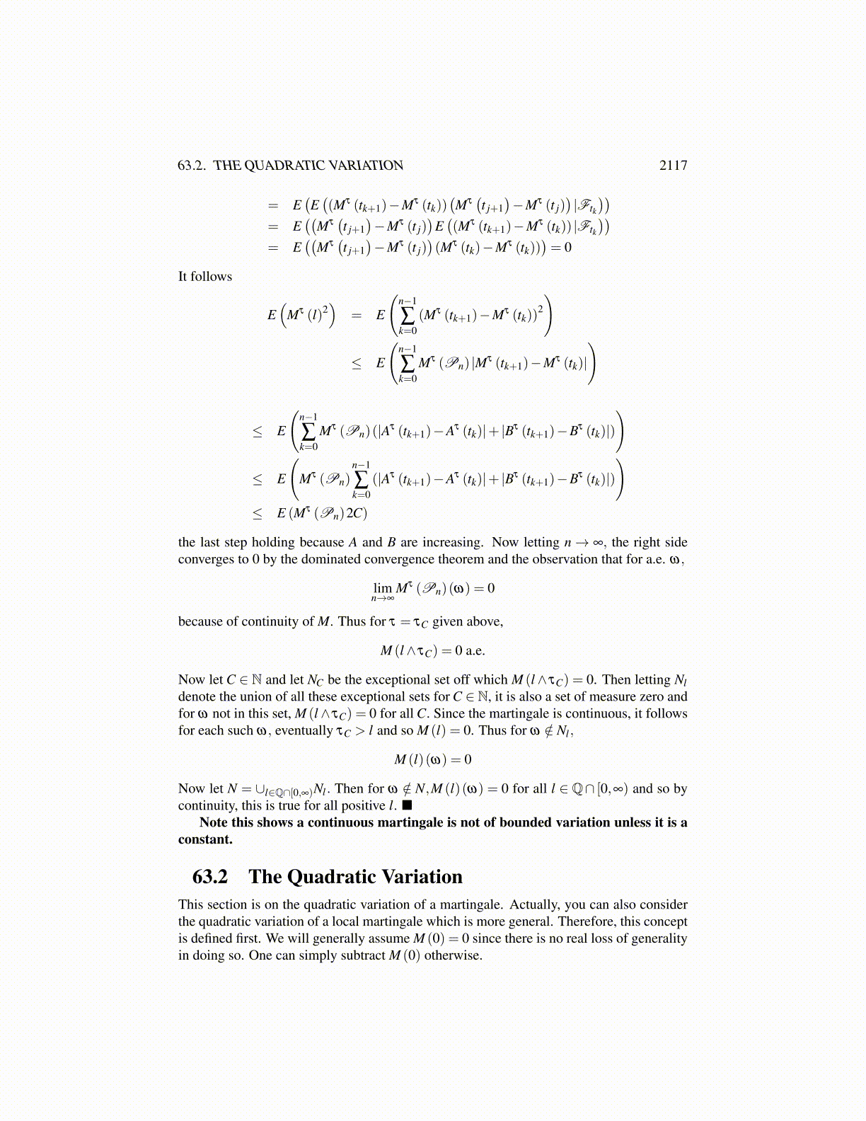 Proof: First of all, the sum converges because eventually τk∧t = t. Therefore, for largeenough k, M (τk+1∧ t)−M (τk ∧ t)≡ ∆Mk = 0. Consider first the finite sum, k ≤ q.