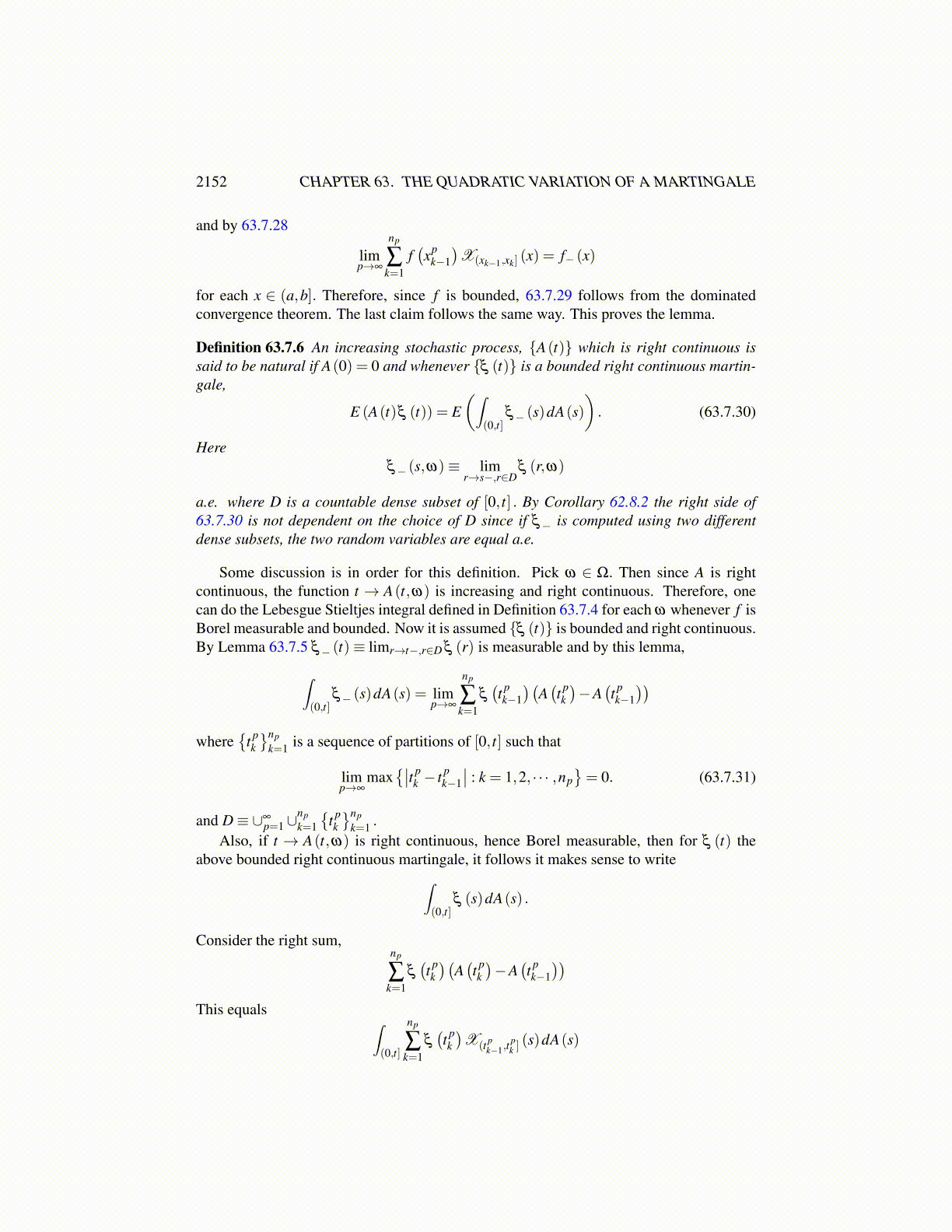 2152 CHAPTER 63. THE QUADRATIC VARIATION OF A MARTINGALE