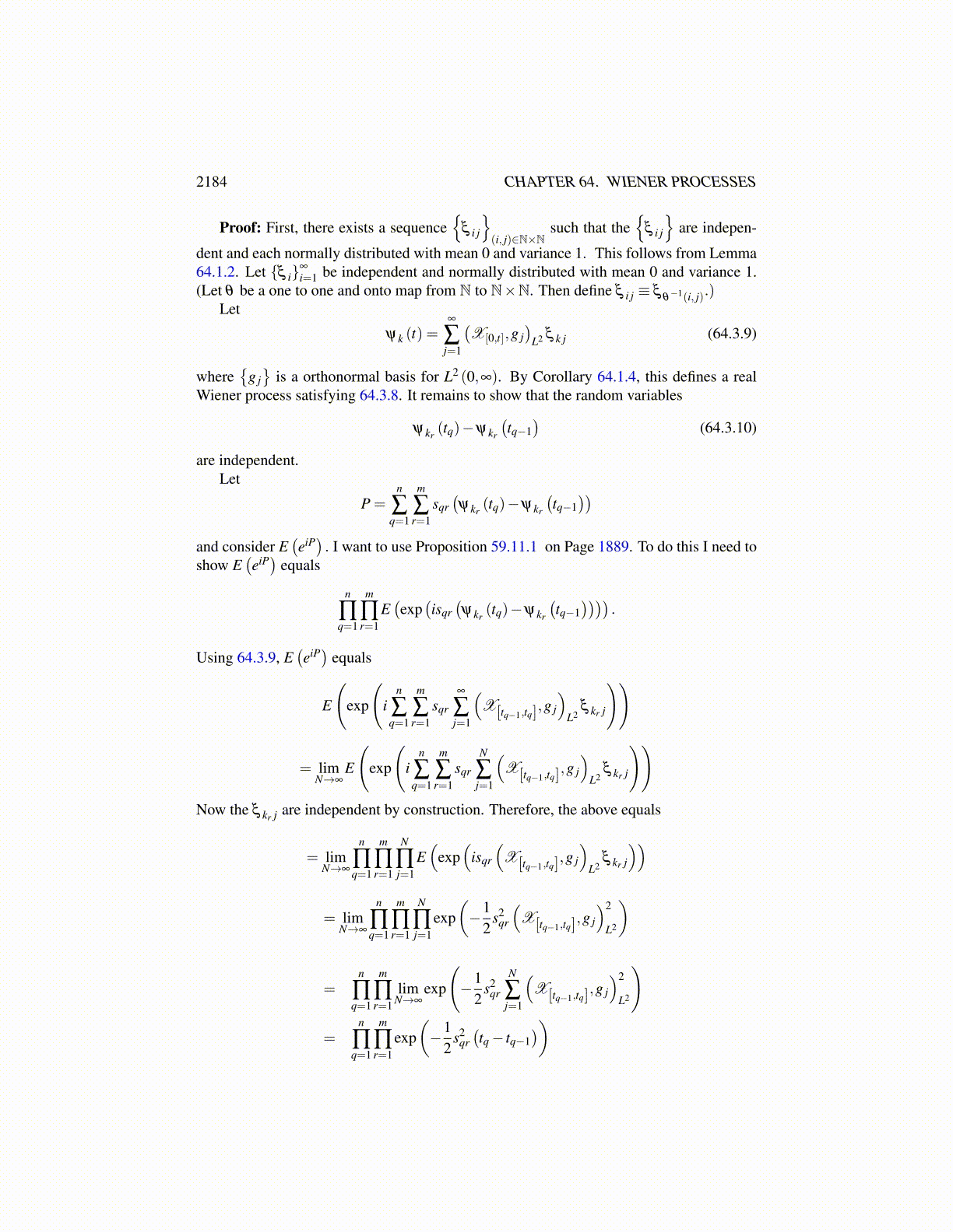 First note that W (t)−W (s) has the same distribution as (t− s)1/2 W (1) . This is be-cause they have the same characteristic function. Next it follows that because of the inde-pendence of the increments and what was just noted that,
