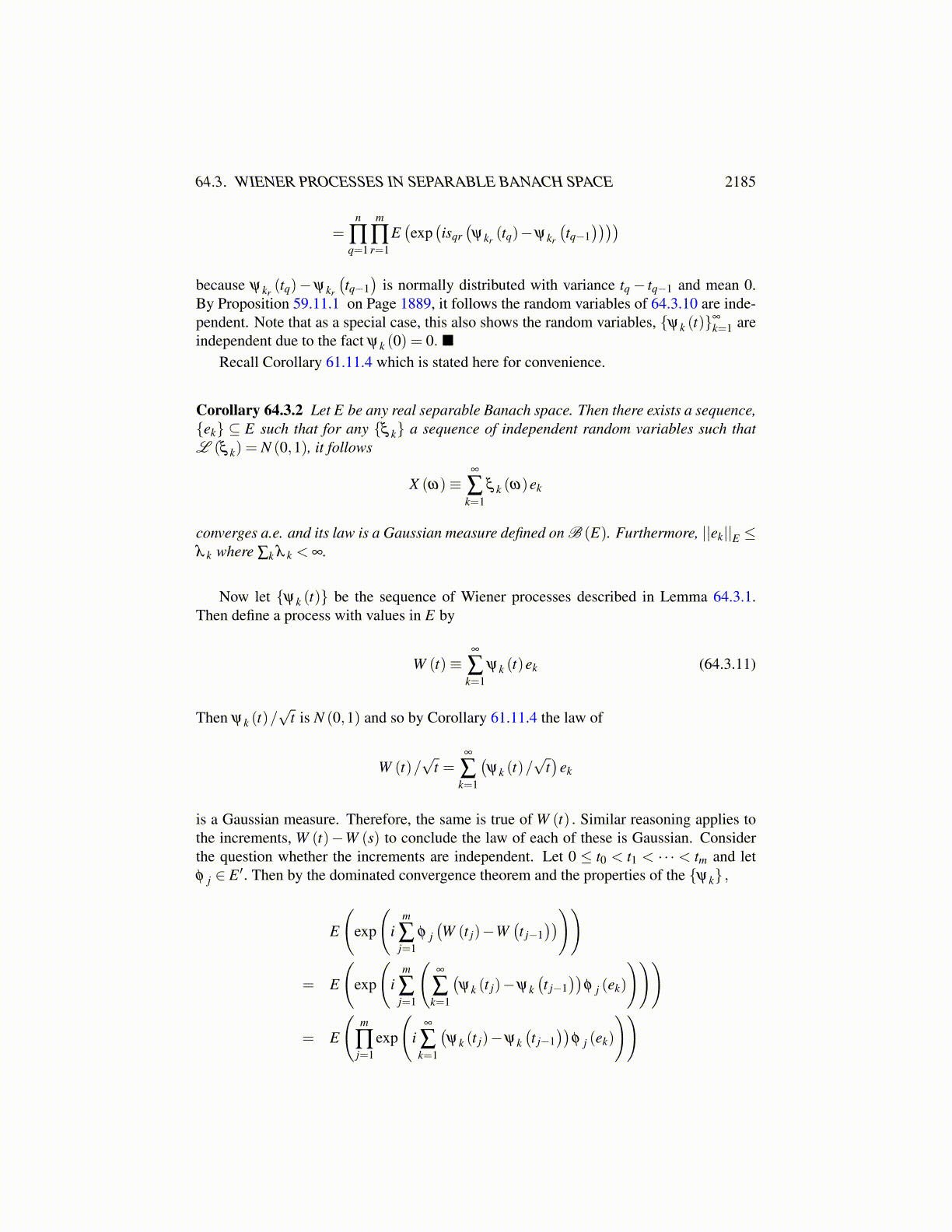 64.3. WIENER PROCESSES IN SEPARABLE BANACH SPACE 2185