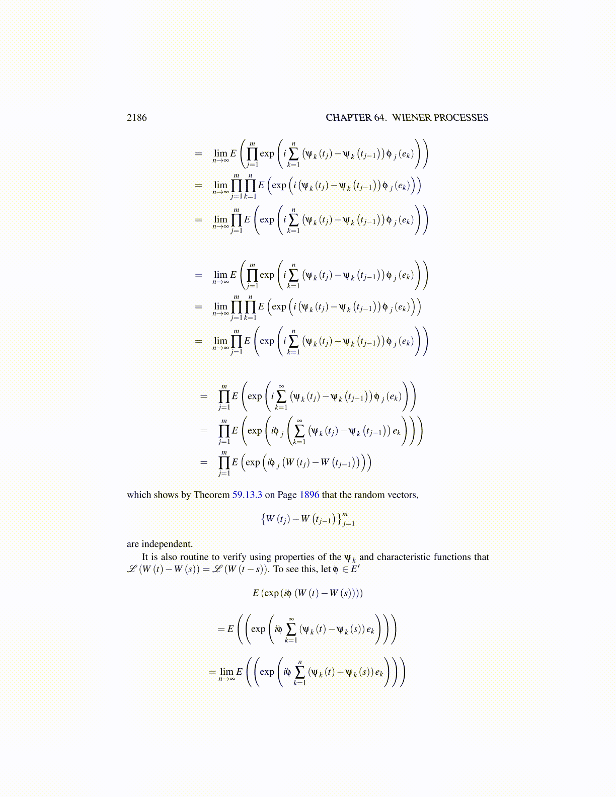 is a orthonormal basis for L2 (0,∞). By Corollary 64.1.4, this defines a realWiener process satisfying 64.3.8. It remains to show that the random variables
