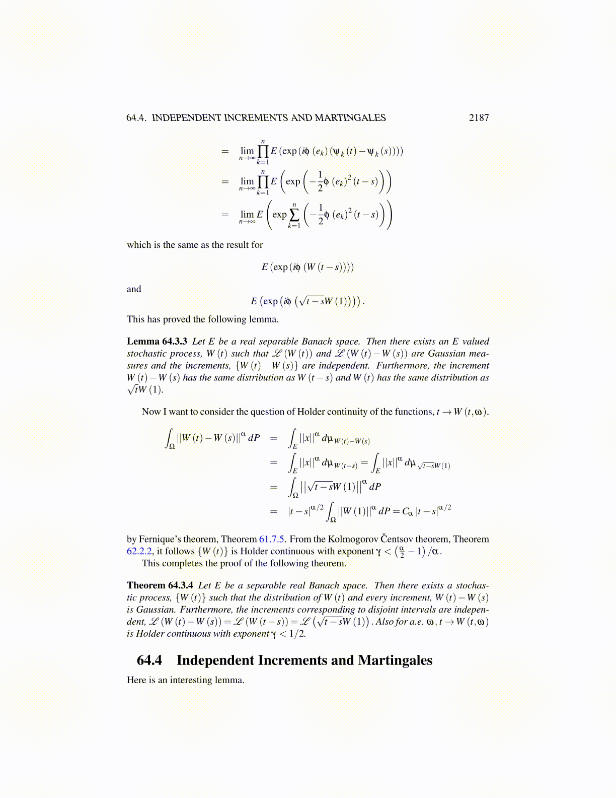 64.3. WIENER PROCESSES IN SEPARABLE BANACH SPACE 2187