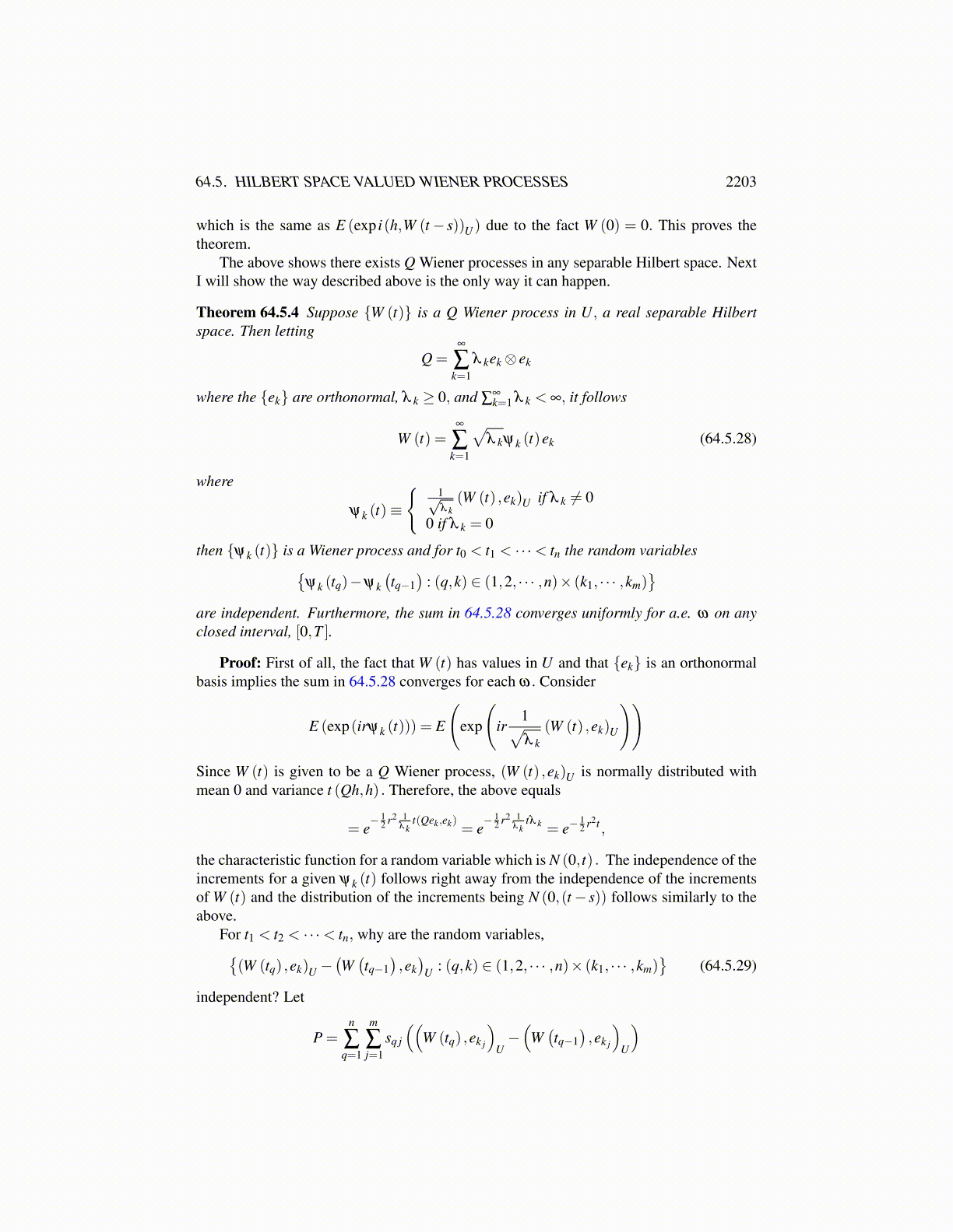 64.5. HILBERT SPACE VALUED WIENER PROCESSES 2203
