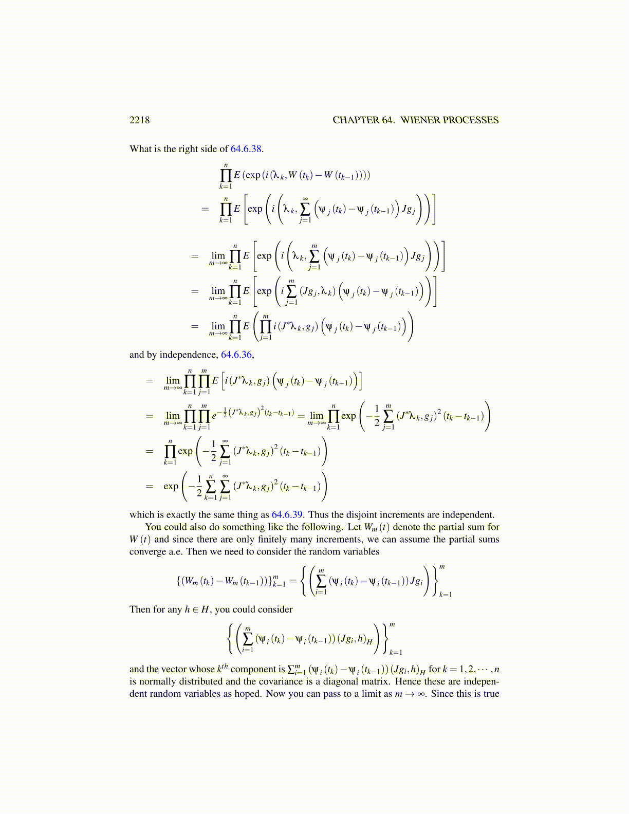 2218 CHAPTER 64. WIENER PROCESSES