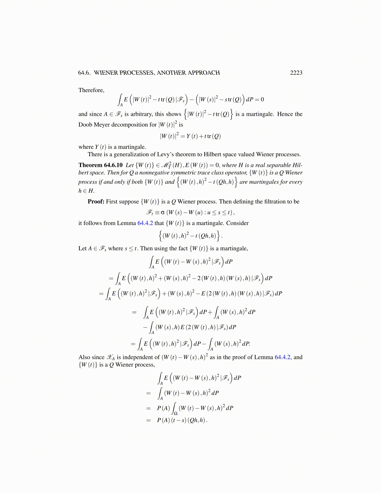 64.6. WIENER PROCESSES, ANOTHER APPROACH 2223