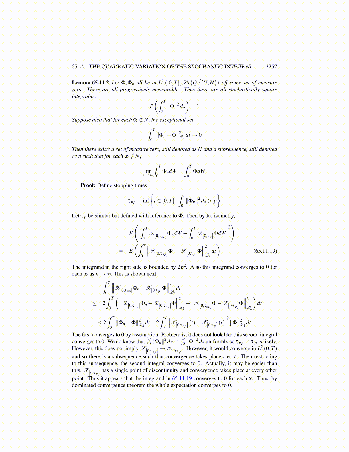 65.11. THE QUADRATIC VARIATION OF THE STOCHASTIC INTEGRAL 2257