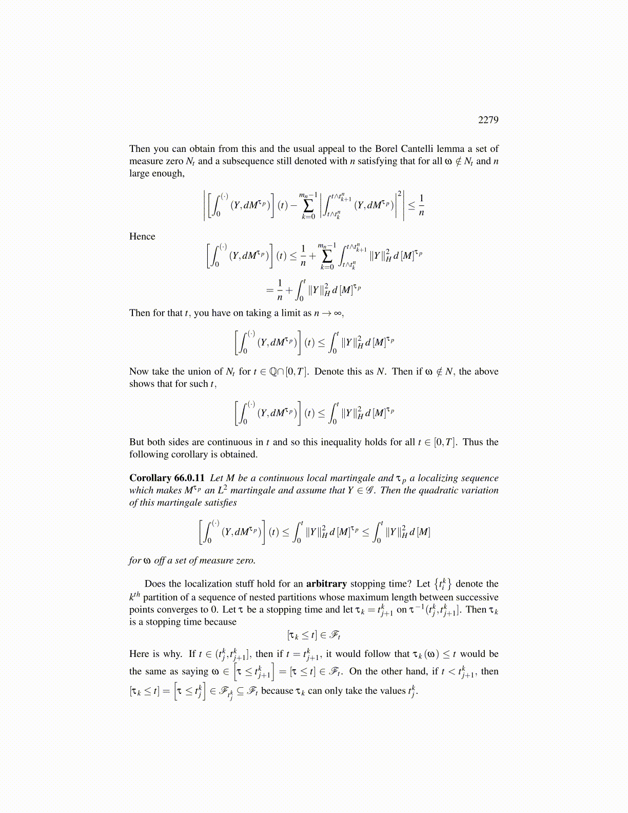 0 (Y,dMτ p) is a continuousmartingale. The inequality