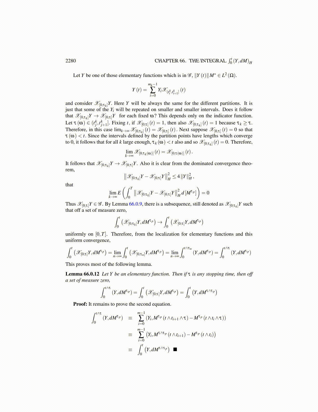 Theorem 66.0.10 Let H be a Hilbert space and suppose (M,Ft) , t ∈ [0,T ] is a uniformlybounded continuous martingale with values in H. Also let