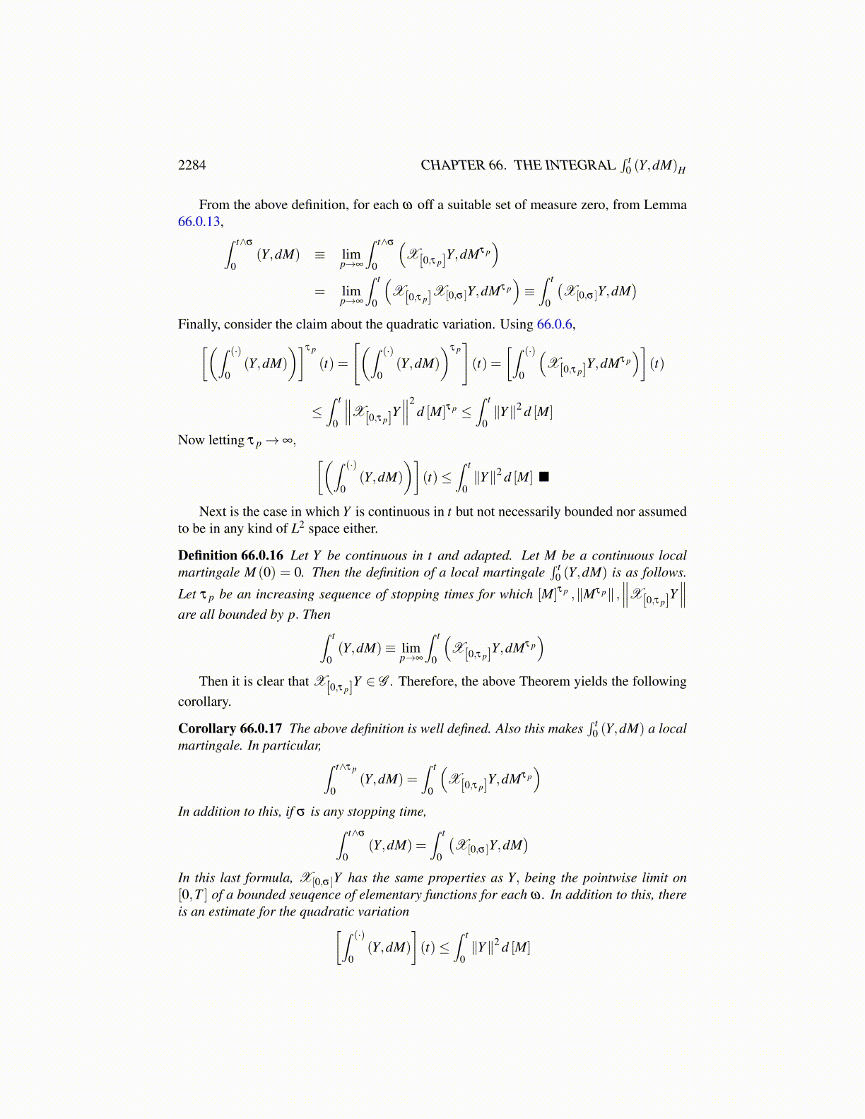 and such that Mτ p is a L2 martingale and X[0,τ p]Y ∈ G . Then the definition of∫ t