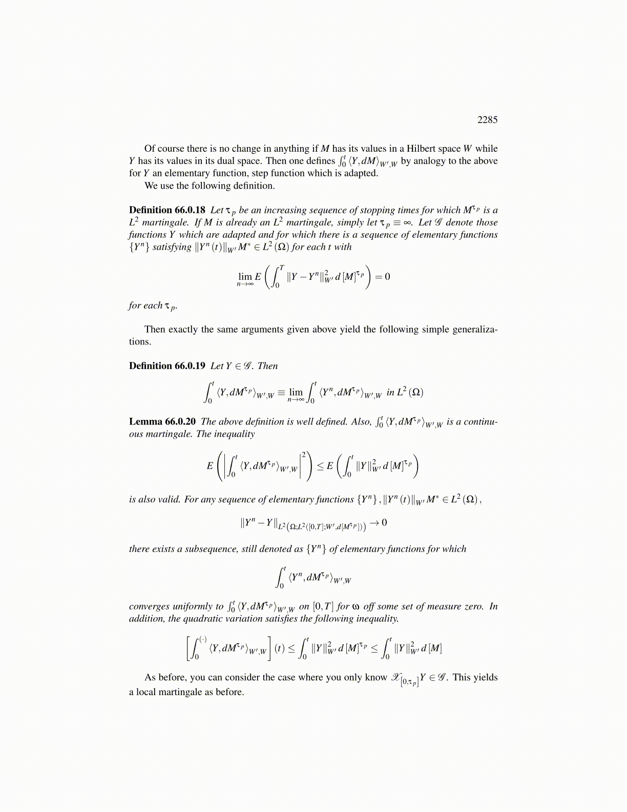 This is part of a more general question. Suppose Ŷ ∈ G . Then why is X[0,σ ]Ŷ ∈ G . Itsuffices to show this. Let {Y n} be the sequence of elementary functions which converge toŶ as in the definition. Also let σn be the stopping time with discreet values which equalstnk+1 when σ ∈ (tn