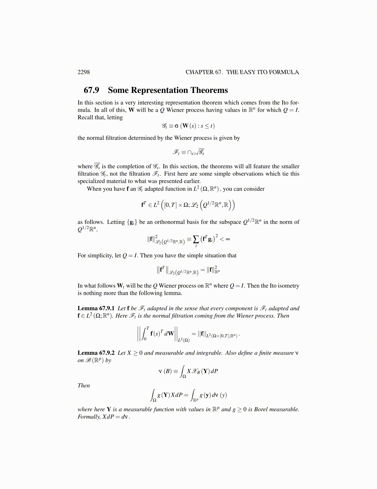 2298 CHAPTER 67. THE EASY ITO FORMULA