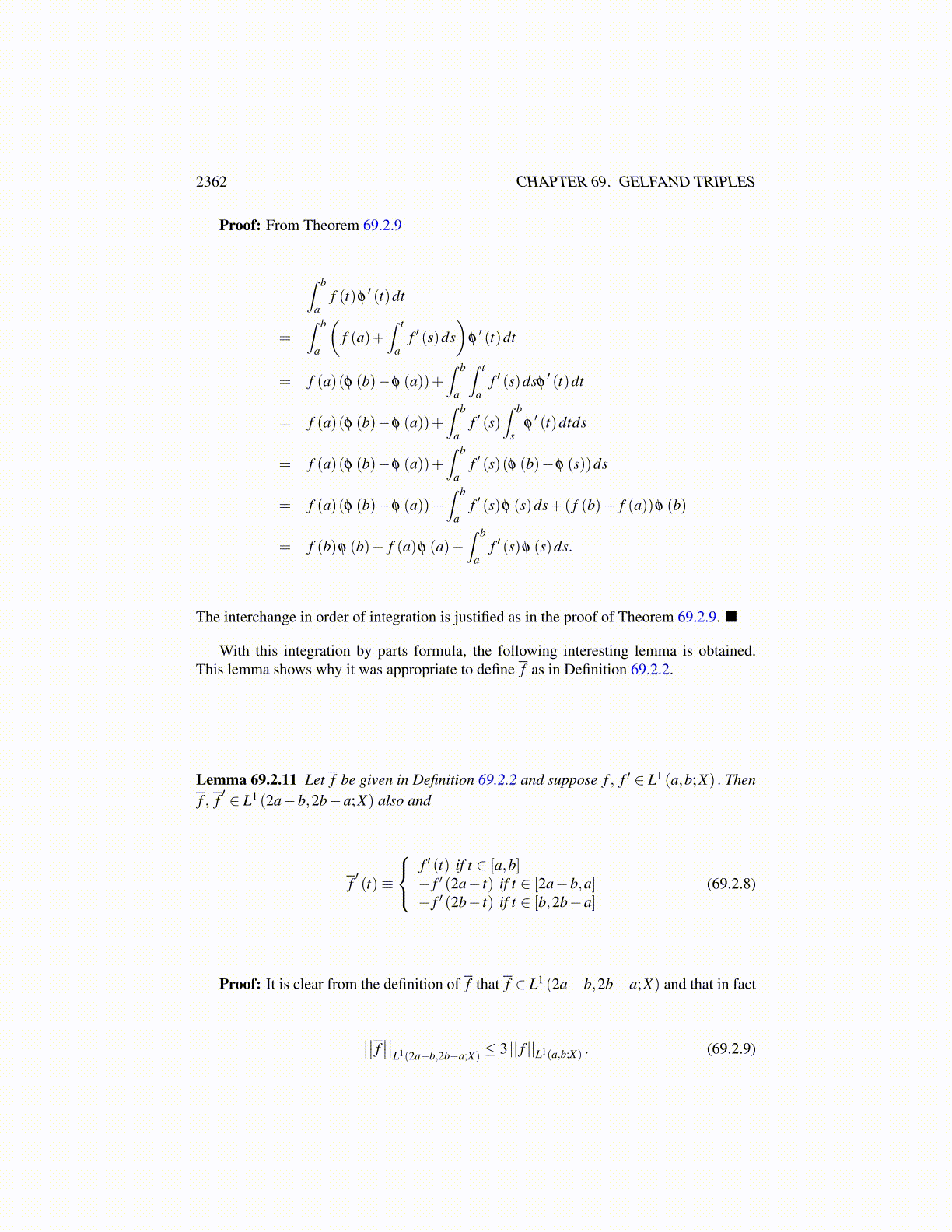 Lemma 69.2.8 Suppose f ∈ L1 (a,b;X) and for all φ ∈C∞c (a,b) ,