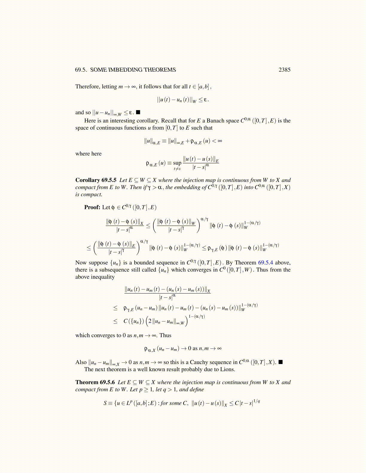 Proof: First consider the issue of S being a subset of C ([a,b] ;W ) . Let ε > 0 be given.Then by Theorem 69.5.2 there exists a constant, Cε such that for all u ∈W
