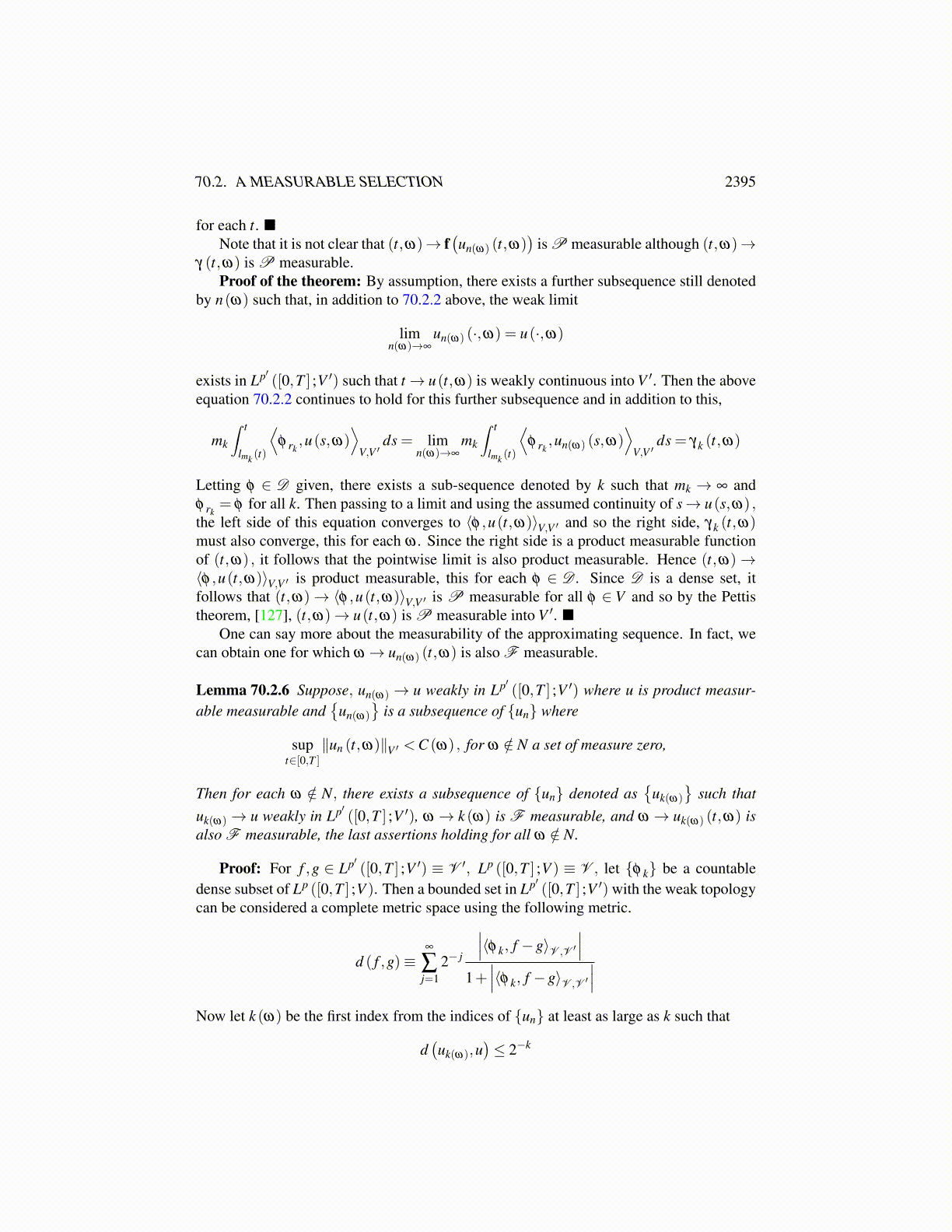 Lemma 70.2.3 ω → Γn (ω) is a F measurable set valued map with values in X. If σ isa measurable selection, (σ (ω) ∈ Γn (ω) so σ = σ (·,ω) a continuous function. To havethis measurable would mean that σ
