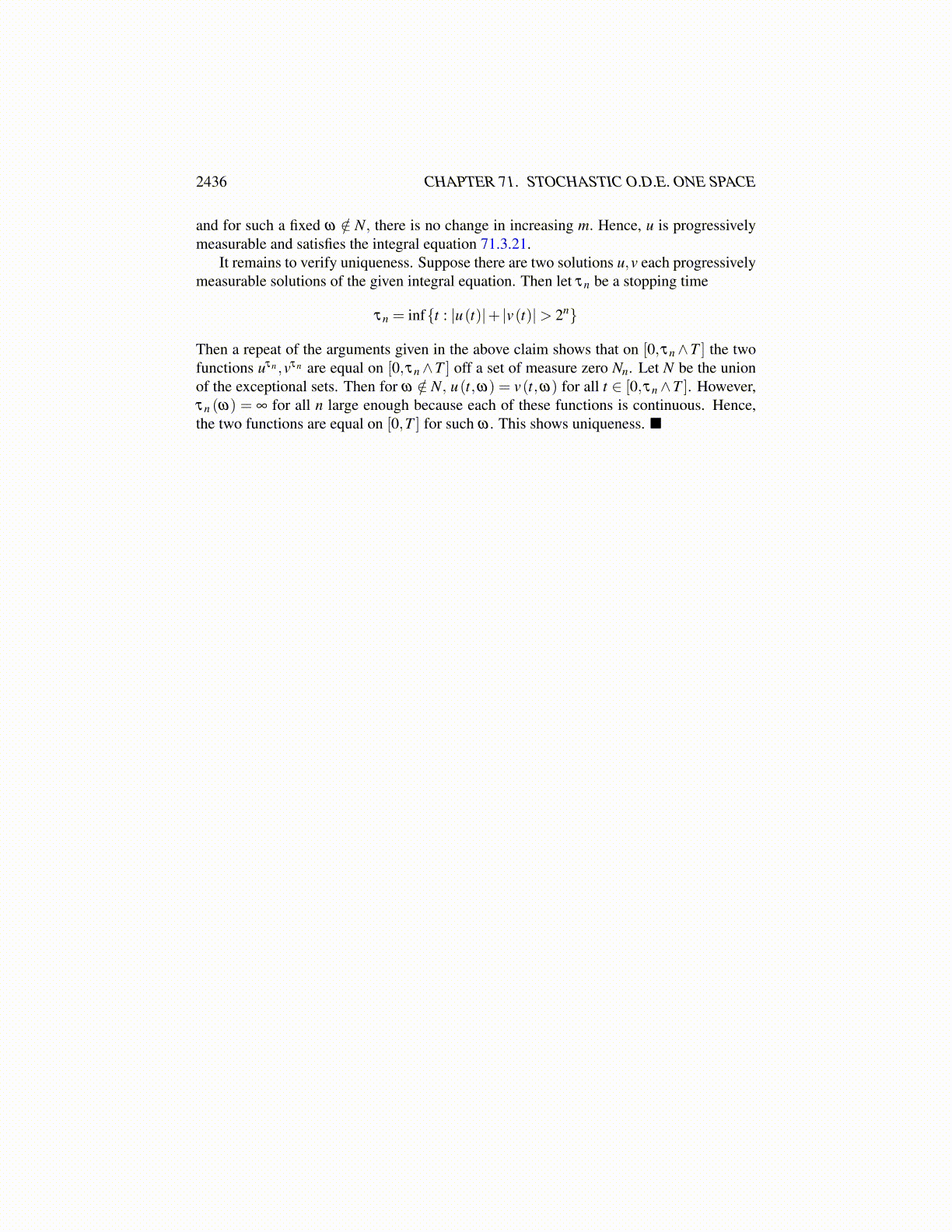 and so τn = ∞ for all n large enough.Claim: For m< n, there is a set of measure zero Nmn such that if ω /∈Nmn, then uτn