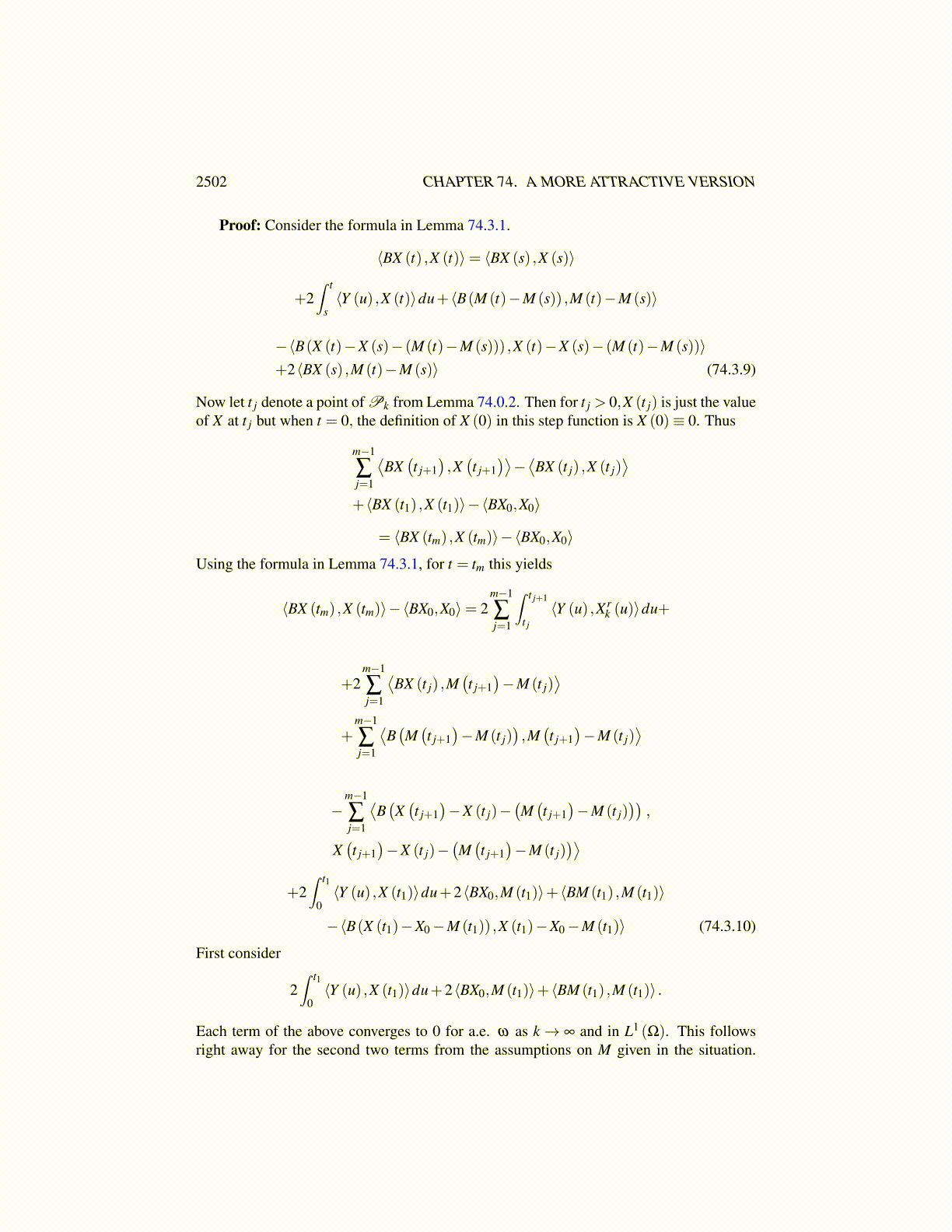 Lemma 74.3.1 In Situation 74.1.1 the following formula holds for a.e. ω for 0 < s < t. Inthe following, ⟨·, ·⟩ denotes the duality pairing between V,V ′.