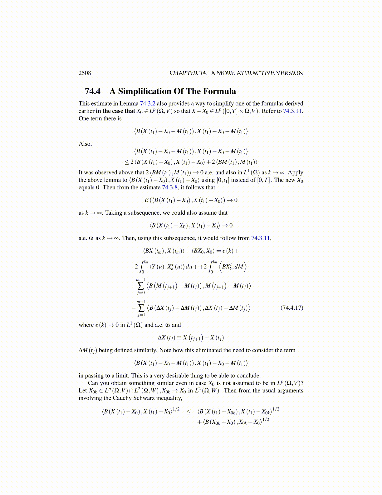 Now from the formula for BX (t) , it follows that BX is continuous into V ′. For any t /∈ N̂so that (BX)(t) = B(X (t)) in Lq′ (Ω;V ′) and letting tk → t where tk ∈ D, Fatou’s lemmaimplies