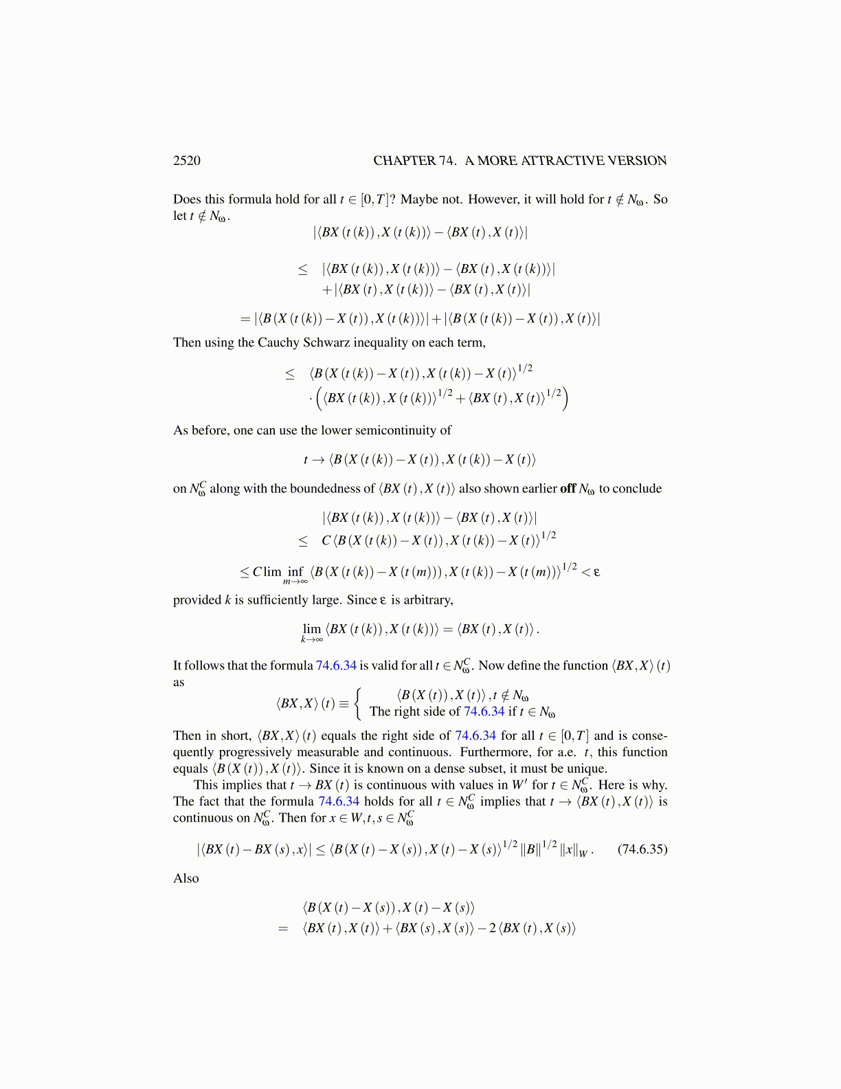 Also, there exists a unique continuous, progressively measurable function which is denotedhere as ⟨BX ,X⟩ such that it equals ⟨BX (t) ,X (t)⟩ for a.e. t and ⟨BX ,X⟩(t) equals the rightside of the above for all t. In addition to this,