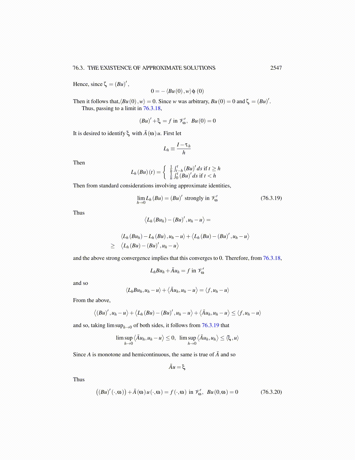 By Proposition 76.2.4 and Theorem 76.2.6, there exists a solution to the above equation ifthe left side is coercive. However, it was shown above in the computations leading to 76.2.5that Lh ◦B is monotone. Hence the coercivity follows right away from Lemma 76.3.2.