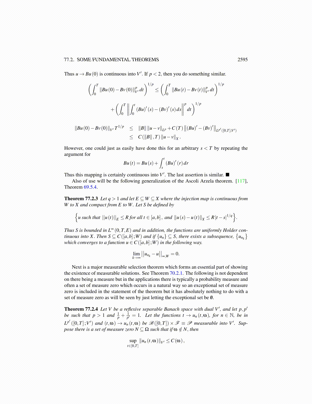 77.2 Some Fundamental TheoremsThe following fundamental result will be very useful. It says essentially that if (Bu)′ ∈Lp′ (0,T ;V ′) and u ∈ Lp (0,T ;V ) then the map u→ Bu(t) is continuous as a map from