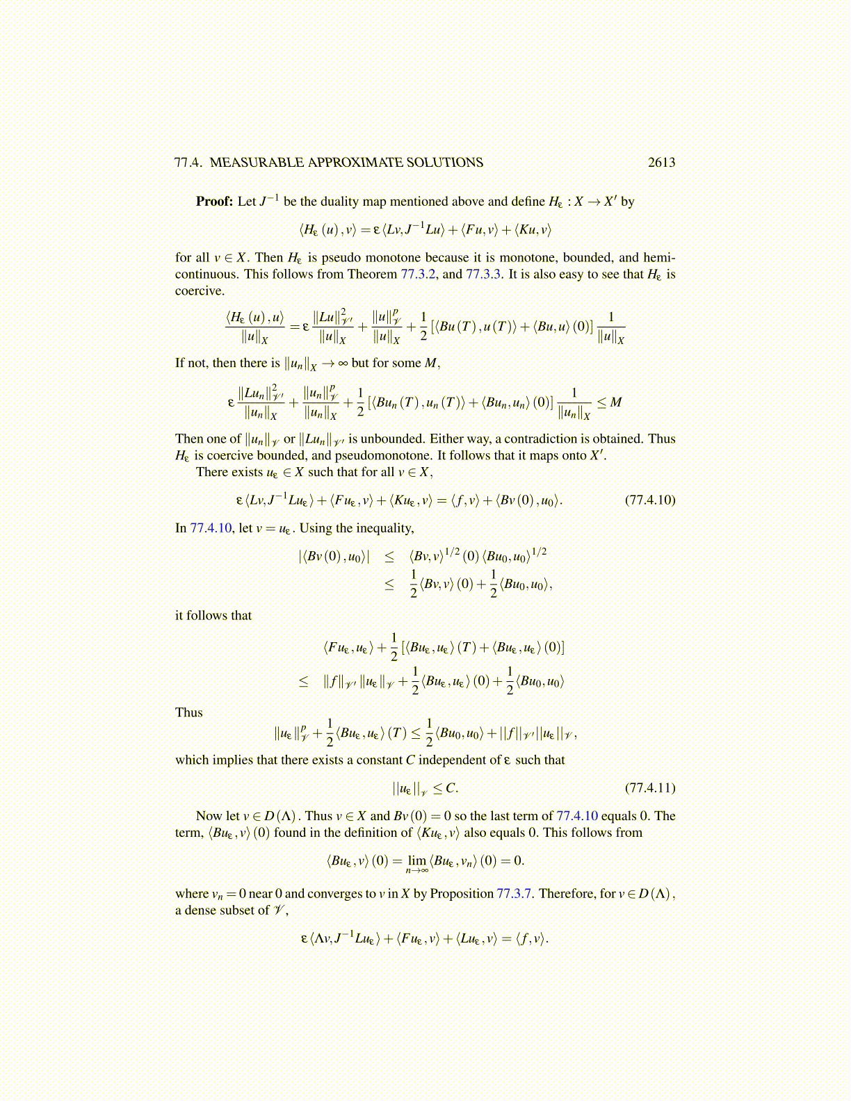 Corollary 77.3.5 Let V ⊆W,W ′ ⊆ V ′ be separable Banach spaces, and B ∈ L (W,W ′)is nonnegative and self adjoint. Also suppose t → B(u(t)) has a weak derivative (Bu)′ ∈Lp′ (0,T,V ′) for u ∈ Lp (0,T,V ). Then there is a continuous function denoted as t→ Bu(t)which equals B(u(t)) a.e. t. Say for t /∈ N. Suppose Bu(0) = Bu0, u0 ∈W. Then